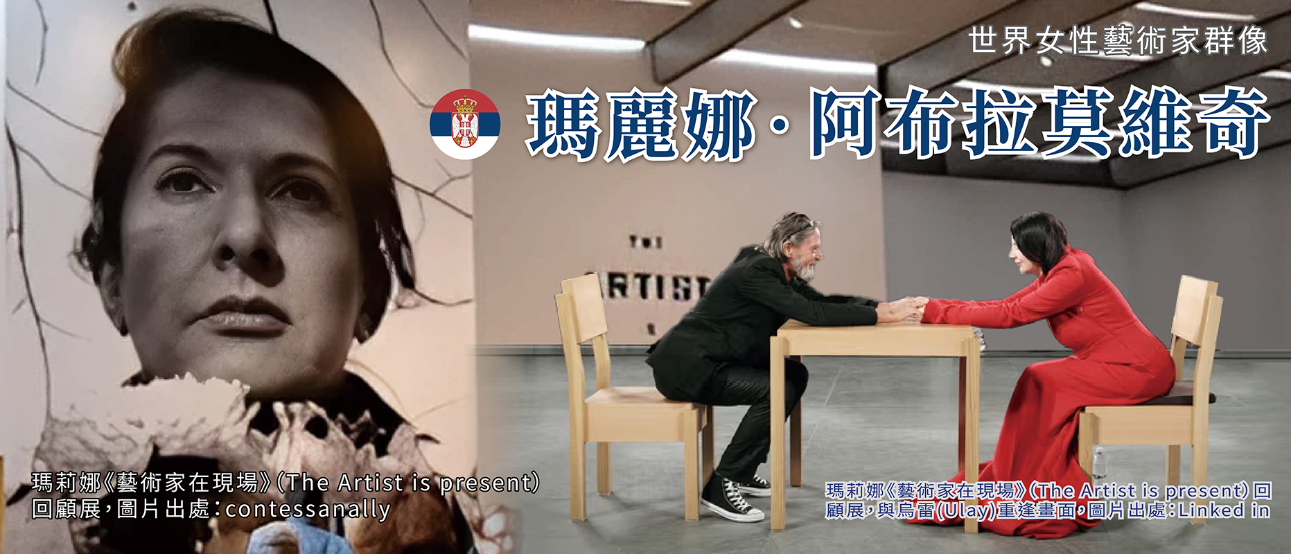 「過去多年來,我們之間發生過衝突,但此刻僅存的,唯有愛與感激。」瑪莉娜藉由作品探討表演者與觀者的關係,七○年代起即以先鋒者姿態投入身體力行,不僅挑戰社會認知,淋漓盡致地呈現對愛情、藝術與生命的關懷,也透過時間證明了行為作品源遠流傳的影響力和藝術價值。