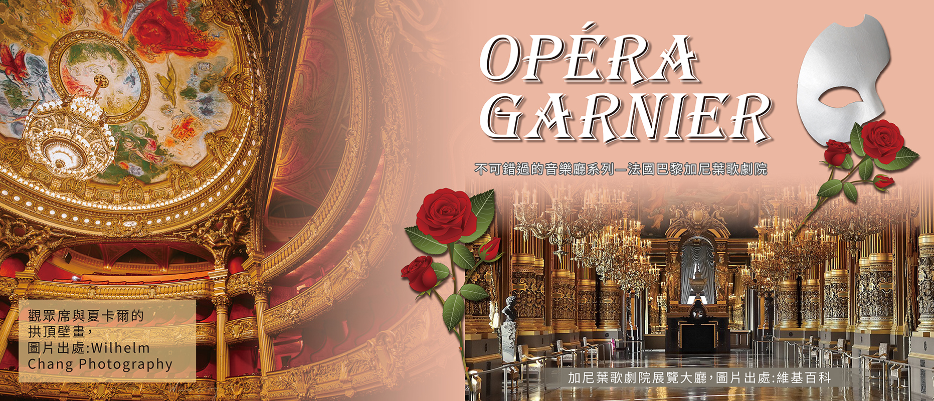 由建築師夏爾.加尼葉(Charles Garnier)設計,於拿破崙三世時期動工,歷時十四年,於1875年落成。作為第二帝國風格與新巴洛克式建築的代表作,加尼葉歌劇院融合壯麗與細膩的藝術精神,被譽為「世界上最著名的歌劇院」。它曾是巴黎歌劇團與芭蕾舞團的主要演出場地,至今仍以芭蕾表演延續法國藝術的優雅傳統。